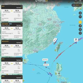 Flightradar24飞机应答机信号轨迹数据显示:4月23日2架空警-500预警机和3架包括翼龙-10在内的大型无人机出现在了台湾海峡附近以及黄岩岛附近空域,同一时间美军P-8A巡逻机、MQ-4C无人侦察机也出现在了黄岩岛附近空域。
